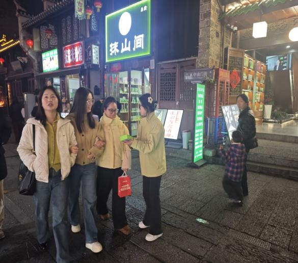 在宣传推广过程中,队员们走进当地茶产品门店,帮助店主进行产品陈列优化,向顾客介绍抹茶产品的特色和饮用方法,现场体验分享,提升了顾客购买意愿。不少顾客表示,通过实践队员的介绍,对本地抹茶有了更深入的了解,愿意尝试购买并分享给身边的朋友。队员们还与企业负责人就品牌推广、电商销售、文化IP打造等方面进行了交流,结合当前市场趋势和消费者需求,提出了一些针对性的建议,得到了企业负责人的认可。